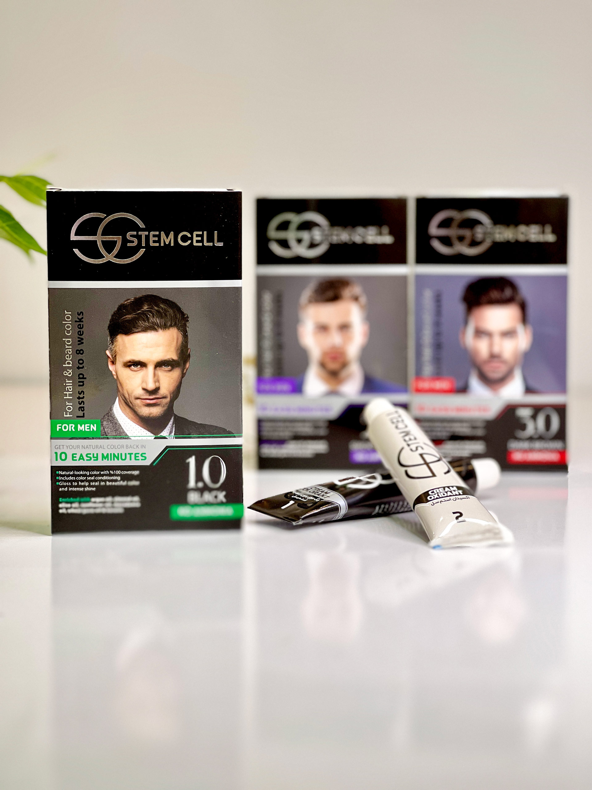 رنگ موی مردانه استم سل بدون آمونیاک به طور کامل موهای سفید را تنها در ۱۰ دقیقه پوشش میدهد و بدون عوارض خشکی و زبری باعث رنگ پذیری کامل و یکنواخت موی سر میشود.